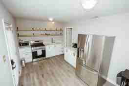 Enjoy a modern kitchen with quartz countertops, a spacious king-size bed, and a comfortable living area with a TV. The space also includes a bathroom and in-unit laundry for your convenience. This apartment is fully furnished and equipped to make you feel right at home.