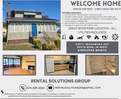 3321 E Mishawaka Ave #3321FL1, South Bend, IN is a 3 bedroom, 2 bathrooms apartment for rent. It is located in the Swanson Park neighborhood of South Bend. It has apartment amenities including fireplace, assigned parking, in-unit laundry, and air conditioning. Dogs are allowed, making it a pet-friendly apartment.