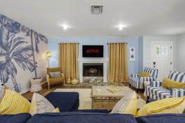 This home is equipped with a fully stocked kitchen featuring high-end stainless appliances, a large refrigerator, ample cabinetry, and a large island with high seating. Enjoy amenities such as a heated private pool, tiki bar, hot tub, fire pit, outdoor patio/dining area, BBQ grill, game room with arcade games, ping pong, poker, and shuffleboard table, as well as putt putt and corn hole.