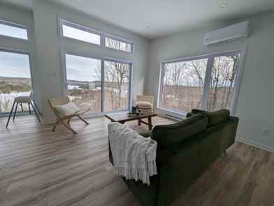 Feel at home in this stunning, brand new property built in 2023, boasting breathtaking views of the lake and surrounded by nature. This spacious, open-concept property comfortably sleeps up to 10 guests.