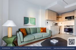 Thoughtfully designed with bespoke finishes, modern furnishings, and a fully equipped kitchen, you’ll enjoy that “I’m home” feeling with this Blueground apartment. Whether you’re lounging in your stylish living room streaming the latest and greatest entertainment on the smart TV or premium wireless speaker, or getting some well-earned rest on the superior quality mattress with luxury linens, you’ll fall in love with everything this Greenpoint apartment has to offer. This apartment also offers in-apartment laundry.