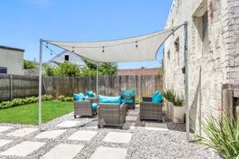 This charming New Orleans-style condo is furnished with custom interiors and hand-picked furniture. It features a fully equipped kitchen, air conditioning, heating, Wi-Fi, a flat-screen TV, a dining area, a washer and dryer, exposed brick wall fireplaces, cozy details, and a spacious porch with a large backyard and outside sitting area.