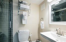 This property features a renovated kitchen with stainless steel appliances, dishwasher, and gas range. Additional amenities include an HDTV, in-unit washer and dryer, central air and heat, and a renovated bathroom with a custom tile shower.