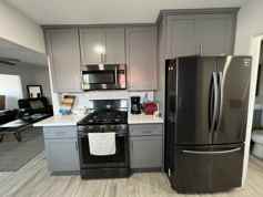 Modern kitchen with Samsung stainless steel appliances and tons of cabinet space.