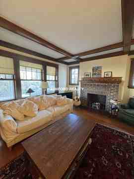 Gorgeous Living Room With Gumwood Cross Beams And Ornamental Fireplace.