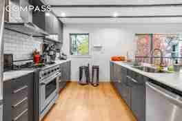 Welcome to 209 Calyer Street, #2, a gut renovated duplex from 1889 with 3 large bedrooms, 2.5 bathrooms, a vast and bright living room with big windows on both sides, a large home office, a modern kitchen, spacious furnished roof deck with a view of Manhattan and access to a shared garden. On the first level of this modern duplex is a very spacious primary bedroom with ensuite windowed bathroom with a walk in stall shower and double sink. Two spacious bedrooms with Northern exposure, a 2nd bathroom with a large soaking tub and washer and dryer closet. All bedrooms have ample closet space. Going up the stairs to 2nd level is a powder room in the stair case. The 2nd level is divided in a huge kitchen, dining area, living area and specious home office. Off the dining area is a windowed balcony with Northern exposure. The kitchen has all appliances and vented outside exhaust. The living area is wide, with high ceilings, two fire places and spacious home office to close off with a pocket door. On the 3rd level is a private and cozy furnished roof deck with all around views. In Greenpoint you ll find a friendly mix of old, well-loved neighborhood businesses mixed with brand-new Brooklyn eateries, shopping, bars, nightclubs, and waterfront parks with beautiful views of Manhattan. Public transportation is the G and L line and the East River Ferry, one stop to Manhattan.