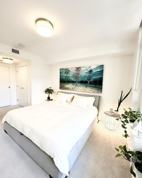* The primary bedroom is massive and has a designer king-size bed by the luxury brand Natuzzi Italia with storage underneath.