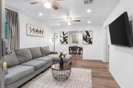 This fully furnished apartment features a spacious kitchen, high-speed Wi-Fi, a washer and dryer, and a fully fenced yard. A keyless lock and smart lock provide convenient guest access.