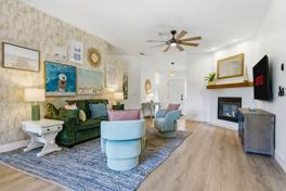 The fully equipped chef’s kitchen features high-end appliances, a large refrigerator, ample cabinetry, a large island with high seating, and a French press and drip coffee maker. The inviting living room offers a smart TV, pull-out couch, chaise lounge, and high ceiling with an open floor concept that directs to the kitchen and dining area. For indoor entertainment, enjoy the arcade machines and pool table. Outdoor amenities include an outdoor heated pool, hot tub, outdoor patio/dining area, outdoor grill, fire pit, putting green, giant Jenga, spikeball, hookey, giant connect 4, cornhole, bocce ball, gramophone, and vinyl records.