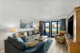 Feel at home in this charming ground-level, 2-bedroom, 2-bath beachside condo, offering a perfect blend of coastal comfort and convenience.