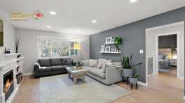 This beautifully updated residence features an open floor plan with a bright living room, dining area, and a stunning kitchen, complemented by new windows, a refreshed front door and railings, updated bathrooms, and easy-care laminate flooring throughout.
