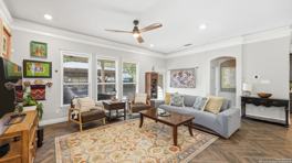 Welcome to this beautifully furnished 4-bedroom, 3-bath, 3-car garage home offering spacious, comfortable living in a thoughtfully designed layout. Downstairs, you'll find an open and bright living and dining area located at the back of the home, featuring generous natural light. The centrally located kitchen is truly the heart of the home-complete with a large island, walk-in pantry with extra shelving, and a built-in desk and mud bench conveniently situated near the garage entry. Kitchen has all the extra appliances you could possibly need. The primary suite sits privately at the rear of the home and includes a large walk-in shower, an oversized linen closet, and an expansive walk-in closet. Two additional bedrooms and a full bath are also located on the main level, providing flexibility for guests or family members. Upstairs offers a second living area ideal for relaxation or work. This space includes a quiet sitting area, an additional table, a dedicated desk area, plus a fourth bedroom and another full bath-perfect for a private guest retreat. The backyard offers an amazing gazebo with a full kitchen/grill area. Perfect way to relax every weekend! The home comes fully furnished with landscaping, making move-in seamless and hassle-free.
