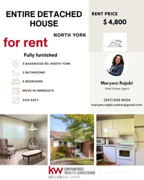 Location, Location, Location, Prime Willowdale! Spacious and charming 3-level backsplit on a quiet neighbourhood, just steps to Yonge Street. This bright, well-maintained and fully furnished home offers 5 spacious bedrooms. Comes fully furnished and move-in ready! Unbeatable convenience - walk to subway/TTC, top-rated schools, shopping, restaurants, and parks. Enjoy a comfortable and turnkey lifestyle in one of North York's most sought-after neighbourhoods.