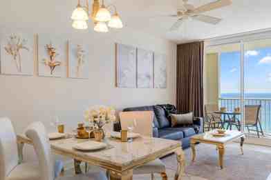 Located in the Majestic Beach Towers, this condo is just five miles from major attractions like Pier Park and Saint Andrews State Park. The resort boasts fabulous amenities, including four pools (two of which are heated), hot tubs, beach access, on-site restaurants, a state-of-the-art fitness center, and a sauna. If you don't like cooking, the Majestic Market offers Starbucks, beer, wine, soda, and made-to-order breakfast, sandwiches, and sweets. You can even plan a date night at the on-site H2O Pool Bar & Grill!