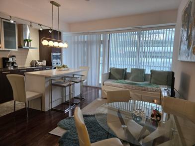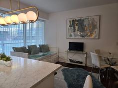 This apartment comes with a fully equipped kitchen and an in-suite washer and dryer. There is ample room to relax and wind down. The unit has many windows that are equipped with manual blinds and shades. The floor is wooden, so it is very comfy and warm. There is also a balcony overseeing the cityscape and busy York Street.