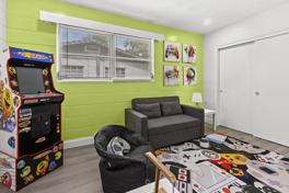 This home offers plenty of space to unwind. Enjoy the spacious living room with a smart TV, a dining area with seating for 6, and a full kitchen with cookware and modern appliances. There is also a laundry room with a washer and dryer, and a game room with seating and entertainment.