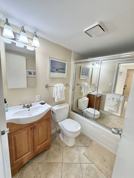 This well-appointed condo features stainless steel appliances and a grand kitchen island where you can prepare meals while watching dolphins play in the ocean right outside your window. The two walk-in glass and tiled showers provide a nice touch after beach days. With a huge living room, you'll have plenty of space to spread out and relax. The layout gives you room to truly unwind whether you're staying for a few days or settling in for a longer beach getaway.