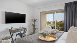 This studio features cozy interiors, modern finishes, and all the essentials you need. Guests enjoy access to a private stretch of sugar-white sand just a short stroll or tram ride away. Spend your days soaking up the sun with beach chair service available seasonally, or cool off at the community’s inviting pool.