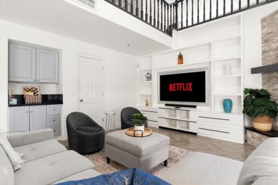 This home features a fully equipped kitchen with high-end appliances, ample cabinetry, and a large island with high seating, perfect for culinary adventures. Relax in the spacious living areas with a smart TV, sectional plush couch, and fireplace. Enjoy indoor games in the game room with arcade machines, a pool table, and foosball, or watch a movie in the movie room. Outdoor amenities include an outdoor pool, patio/dining area, deck, putting green, giant connect 4, and cornhole.