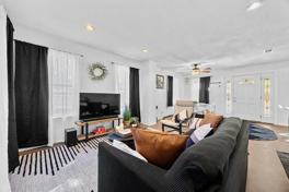 This stylish home offers a fully equipped kitchen with stainless steel appliances, granite countertops, cookware, and a coffee maker. The living area boasts plush seating, a large smart TV, and expansive windows that flood the space with natural light. Enjoy the outdoor space with a BBQ grill and fire pit, perfect for relaxation and entertainment. Additional features include high-speed Wi-Fi, a washer and dryer, and a smart TV with streaming services.