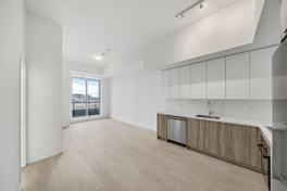 Spacious 1 Bedroom + Den condo with 2 Baths. Loft inspired 11' ceilings and open concept layout with sunny western exposure. Deluxe Kitchen has built-in Stainless Steel Appliances and Quartz Counters. Primary Bedroom with 3 pce Ensuite Bath and walk-in Closet. Large separate Den or Home Office with sliding Barn Door for privacy. Ensuite Laundry. Luxury vinyl flooring and custom blinds throughout. Oversized Locker adjacent to unit. Appx 750 sq ft + Balcony. Parking included.