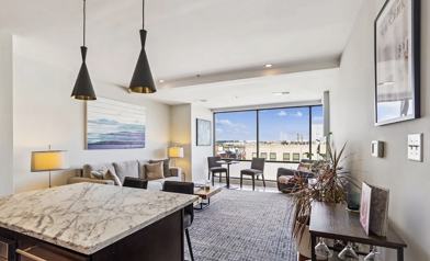 Amazing new price! This stunning residence lives like a two-bedroom and is ideally positioned above the vibrant 14th Street corridor, offering expansive city views through floor-to-ceiling windows that fill the home with natural light.