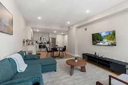 Welcome to your stylish Philadelphia retreat! This modern 1-bedroom, 1-bathroom apartment comfortably sleeps 4, featuring a queen bed in the bedroom and a twin pull-out sofa in the living room. Relax in the bright living area and enjoy your favorite shows on the 55” flat-screen TV, or cozy up with a book after exploring the city. The fully equipped kitchen includes a coffee maker, toaster, and all necessary utensils, so you can enjoy homemade meals or morning coffee at your leisure. For those who need to stay productive, a dedicated workspace with a desk and chair provides the perfect spot to work remotely or plan your Philly adventures. The apartment also features a washer and dryer, making it convenient for short getaways or longer stays.