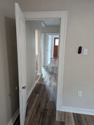 all new wood style flooring, freshly painted in a neutral taupe color.