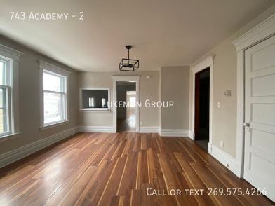 Spacious 4 bedroom, 2 bathroom duplex located near WMU and Kalamazoo College in Kalamazoo, MI. This charming apartment features wood floors throughout. There are 3 bedrooms on the main floor of the 2nd floor unit and two bathrooms. The 3rd floor features a large bedroom/office/den/playroom/storage. There is on-site laundry shared with neighboring tenants. Off-street parking available.