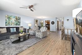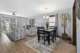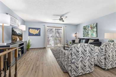 This home features a fully stocked kitchen with all the necessary amenities and appliances, a cozy living room with a large Smart TV, a dining table for 6, a washer and dryer for guest use, and a balcony with a table and grill. The open-concept living room, kitchen, and dining room create the perfect space for memorable gatherings.