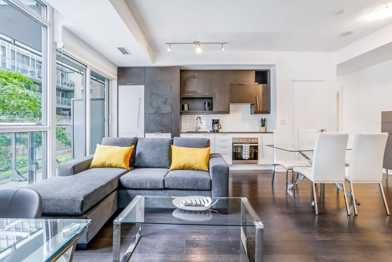 150 Simcoe Street #1366313P, Toronto, ON is a 2 bedroom, 1 bathroom apartment for rent. It is located in the Entertainment District neighborhood of Toronto. It has apartment amenities including furnished, central heat, outdoor space, air conditioning, balcony, microwave, tv, wi-fi, in-unit laundry, oven, and dishwasher.