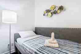 This apartment features a fully equipped kitchen and in-unit laundry. Enjoy high-speed internet and a smart TV.