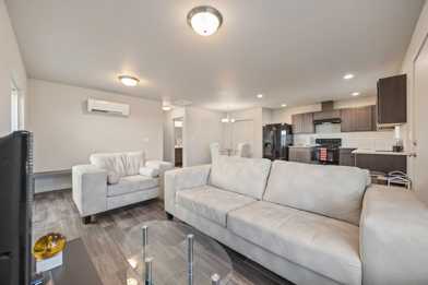 Built in 2021 and spanning ~1,163 sq ft, it sleeps up to 6 with a bright open layout, fully equipped kitchen with stainless appliances, cookware, and essentials, in-unit laundry, and fast Wi-Fi for work or streaming. Bedrooms feature comfy bedding and natural light, and the primary bedroom has an en-suite bath. Relax on the small patio, with easy parking at the door.