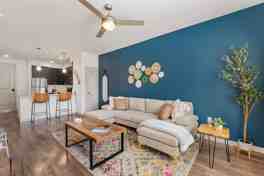 Designed to provide a luxury experience, this apartment is fully stocked with items and amenities to cater to business travelers, families with children, and couples. It features a stylish living room with elevated ceilings, a smart TV, comfortable seating, and board games. The fully stocked kitchen includes a coffee station, stainless steel appliances, and cooking supplies. Other notable amenities include in-unit laundry, reserved parking, EV car charging stations, outdoor BBQ grills, and a community lounge with a coffee bar. Pamper your pooch in the on-site dog park and pet wash station. Unwind at the apartment community with resort-like amenities, such as an exclusive pool, a state-of-the-art fitness center, a private patio overlooking the courtyard, and well-lit outdoor firepits and dining area.