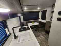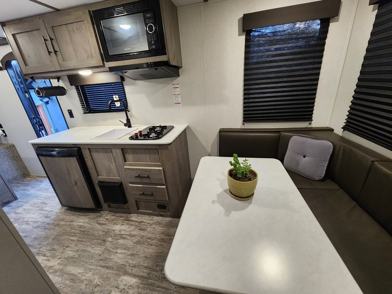 NOW AVAILABLE! Furnished RV/Studio with Kitchenette, Seating Area and Private Bathroom. Great natural light, comes with fridge, microwave, 2-gas-burner stovetop, queen bed, storage shelves, drawers, cabinets, dinette, private bathroom with shower.