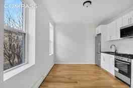 Welcome home to this updated two bedroom floor through apartment. Conveniently located just steps to the A/C subway and the LIRR. Just one flight up The apartment has great light (windows front and back), with bedrooms in the back. Lots of light and hardwood floors. Updated kitchen with granite countertops and stainless steel appliances.. Tenant responsible for heat. Pets upon approval. Close to transportation, shopping and restaurants.