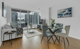 This spacious and beautifully furnished 2-bedroom home, with an additional full-sized pull-out sofa bed, is perfectly situated in the heart of downtown Vancouver, offering stunning city views. Ideal for couples, business executives, or friends looking to explore the city, this apartment is close to great restaurants, bars, stadiums, and grocers.