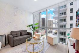 Step into a stylish and smartly designed space, created for ultimate comfort and convenience during your Miami stay. Relax in a modern living space featuring a plush sofa bed, unwind in a comfortable bedroom area with a premium queen-size bed and quality linens, and enjoy a sleek, fully equipped kitchen for preparing meals and snacks with ease. Refresh in a pristine, modern bathroom with a walk-in shower and essential toiletries provided, and enjoy the convenience of keyless entry and an in-unit washer and dryer.
