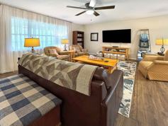The Krause House offers a fully equipped kitchen, cozy living spaces, a BBQ grill, a fire pit, a hot tub, a 65" Smart TV, a washer and dryer, fast Wi-Fi, and a dining table that seats 8. The fully equipped kitchen includes a full-sized fridge and freezer, an electric tea kettle, a Keurig coffee maker, a blender, a microwave, a toaster, a hand mixer, pots, pans, baking dishes, mixing bowls, and wine glasses. Enjoy the screened-in front porch for morning coffee or evening conversations, and a spacious backyard for outdoor play.