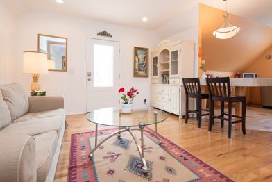 This is a non-smoking apartment and a two-day minimum stay is preferred. Check-in is at 1 PM and check-out is at 11 AM. The upstairs unit has a separate entrance with a flight of stairs leading to the private deck. Please be considerate of the downstairs neighbors, as they can hear walking. Slippers are provided for your comfort.