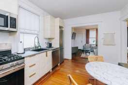 This home offers a fully renovated and fully stocked kitchen. There is an in-unit washer and dryer available for use.