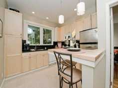 This charming 1-bedroom, 1-bathroom apartment in North Beach offers a unique living experience with its 10-foot ceilings, redwood deck, and stunning city views. Feel at home with high-end finishes like stainless steel appliances, granite countertops, and radiant heated flooring. The apartment is located on the upper level of a single-family home, featuring a brick-paved driveway surrounded by lush landscaping and towering trees.