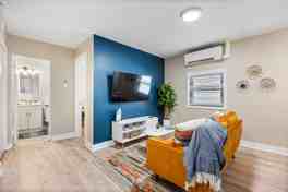 This thoughtfully designed apartment features a queen-size bed outfitted with a memory foam mattress and a white noise machine. Relax and unwind while catching up on your favorite shows on the Smart TV, or enjoy the board games provided. For those who enjoy culinary adventures, the fully equipped kitchen is a delight and comes complete with a Keurig coffee maker. The kitchen is stocked with all the essentials, from cookware and utensils to a dining area for two. Other features include a washer and dryer on-site and a Smartlock-enabled seamless check-in experience.