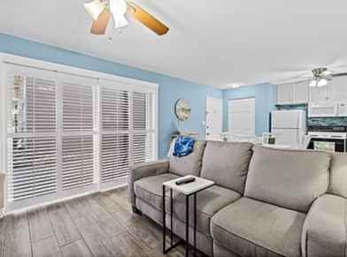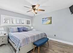 This coastal retreat offers a modern take on beachside living. The remodeled kitchen, new flooring, brand new A/C, and beautiful new windows and slider with chic plantation shutters create a bright and welcoming space. In-unit laundry and beach essentials are included for your convenience.