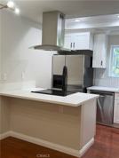 Nestled alongside a peaceful stream this home offers a private and tranquil setting, Newly installed windows and blind elevate the overall comfort and appearance of the space. The kitchen has been upgraded with white quartz counters, refreshed cabinetry, elegant herringbone tile backsplash, and a stainless range hood for a clean, modern look. Recessed lighting and laminate flooring run throughout the main living areas, adding warmth and functionality. The bathroom features a shower with a tub combo and a spacious walk-in closet. Conveniently located near shopping, dining, and freeways. Community amenities include a pool, spa, and tennis courts.