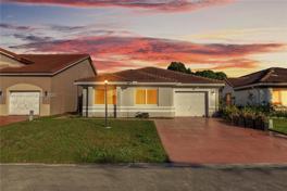 Step into elevated living in this beautifully remodeled home within a guard-gated community in Miami Gardens. Designed for discerning renters who value both style & comfort, this home blends modern luxury with a warm, inviting feel & thoughtful attention to detail thruout, including impact windows/doors for peace of mind. The chef’s kitchen is a striking centerpiece, featuring quartz waterfall counters with bar seating, an induction range with double ovens, & French-door refrigerator with hi tech display—ideal for entertaining or everyday living. Porcelain tile floors & LED lighting create a bright, refined ambiance. Outdoors, enjoy a private resort-style retreat with an oversized pool, sun shelf, & spa with heater & chiller for year-round enjoyment. A travertine patio, lush privacy hedges, & tranquil lake views set the stage for relaxed evenings, weekend gatherings, & effortless outdoor living. The primary suite offers a custom walk-in closet with built-in cabinetry & a spa-inspired bath featuring a dual glass shower, his and hers vanities, & anti-fog mirrors. Guest bedrooms include reach-in closets with custom cabinetry, while the secondary bath features glass subway tile and a soaking tub. Additional highlights include a 1 car garage, dedicated laundry room with high-capacity washer/dryer, access to premium community amenities including 24-hour security, pool, basketball court, & kids play area—delivering a secure, low-maintenance lifestyle with resort-style conveniences