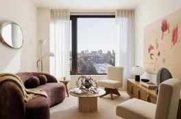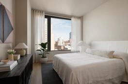 Residences feature ceilings up to 11.5 feet, oversized windows, and sleek panelized appliances. Bathrooms are finished with Italian porcelain tilework and premium fixtures. Each home includes a Bosch washer/dryer and built-out closets for convenience. With resort-style amenities and a vibrant neighborhood setting, this is Brooklyn living at its best.