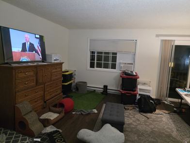 We have cameras and watch dogs outside the apartments. Very secure safe facility and you have a driveway to get inside where you park. 2 bedrooms, one is mine. Kitchen, living room, bathroom, dining room, hallway, closets and storage, Patio deck. I have 2 cats and that's all the apartment allows. When I go out of town on projects I will pay you to take care of my cats. Big tv in the living room. We have a shared laundry room. I work and go to college. I want at least a $550 cash deposit apart the the $800 rent