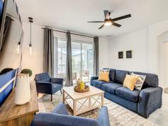 Experience the excitement of the new Epic Universe park this May 22nd, with unbeatable comfort just minutes away. This amazing unit is located on the second floor, requiring guests to climb stairs. Feel at home with a fully equipped kitchen, AC, bed linens, four smart digital-cable TVs, patio furniture, hair dryers, washer/dryer, ironing supplies, free parking on premises, garage, high-speed internet, hangers, and resort access.