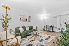 This modern apartment is fully stocked with items and amenities to cater to business travelers and couples. It features a stylish living room with a smart TV, games, a comfortable couch, and a dedicated workspace with high-speed Wi-Fi. The fully stocked kitchen has brand new appliances to enjoy a homecooked meal. Other notable amenities include in-unit laundry, free reserved parking, fully stocked bathrooms, noise machines, a hair dryer, and an iron with board. Unwind at the apartment community and enjoy the resort-style pool, outdoor BBQ grill, and a firepit with seating.